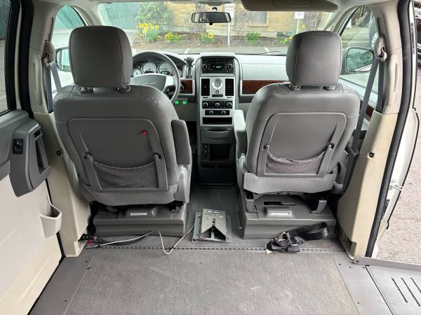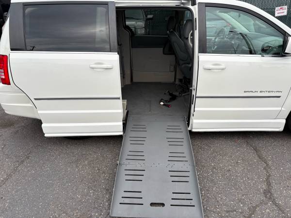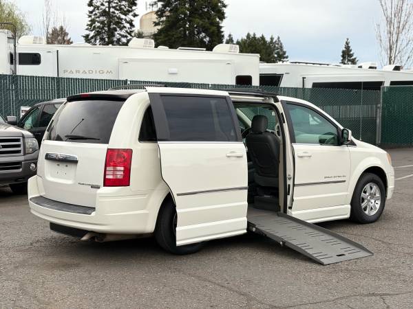 This 2009 Chrysler Town & Country Touring is a well-maintained, clean wheelchair-accessible van equipped with a power side-loading ramp. Finished in classic Arctic White with a leather interior, this van offers a great balance of affordability, reliability, and everyday usability.