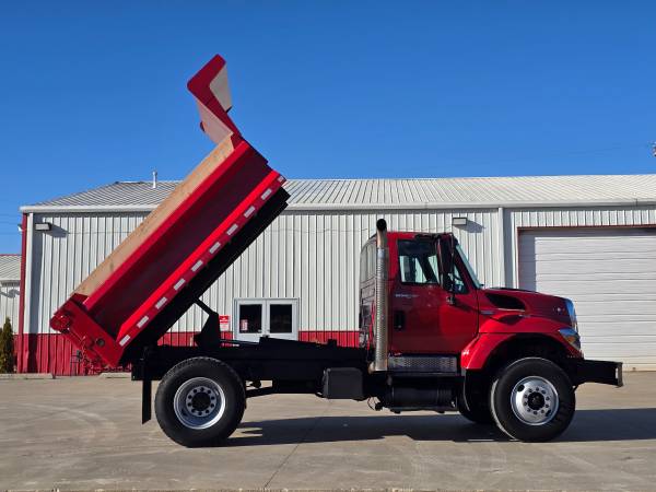 This Low Use Dump Truck has been well maintained and it shows in the condition here. The exterior is great. The interior is great! The dash board is amazingly clean and everything works as it should. It runs, drives, shifts and stops just as it should. AC BLOWS ICE COLD ! It is ready for WORK today ! This 7400 just returned from a 2 hour roundtrip journey with ZERO issues. She drives 65 mph easily and the cabin hosts an AirRide Seat that is in Great Condition and is Comfortable for anyone at any driving distance. It sits on great 22.5" Tires (deep tread). This TRUCK is a pleasure to drive. Drives "Like New" Looks "Like New" ... This INTERNATIONAL truck just recently passed inspection. The dash has NO lights on for service or maintenance needed ... NO LEAKS ! ... I repeat, "This truck currently does not leak a drop on the ground below it."