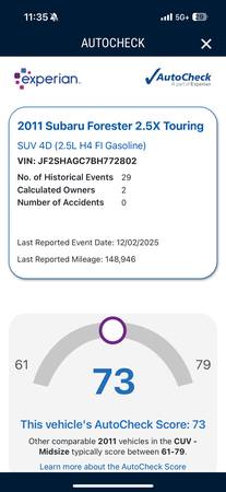 This Forester is loaded with options! It has back up camera satellite radio, heated leather seats, cold weather, package, moonroof, alloy, wheels, keyless entry arm and a lot more!!!