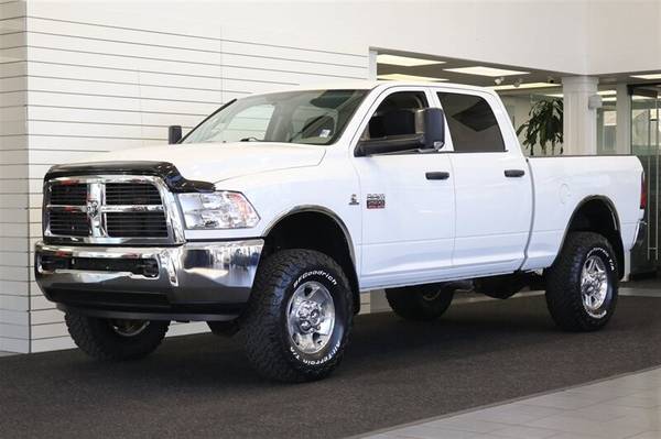 UP FOR GRABS IS A SUPER HARD TO FIND IN THIS SHAPE AND CONDITION AND SUPER LOW MILES ONE OWNER SINCE NEW CLEAN TITLE AND CARFAX CERTIFIED 2012 RAM 2500 CREW CAB SHORT BED 4X4 WITH TURBO CUMMINS 6.7L AND IMPOSSIBLE TO FIND 6-SPEED MANUAL TRANSMISSION. LOADED WITH ALL POWER OPTIONS, CHROME APPEARANCE PKG, TOWING MIRRORS, 6-PASSENGER SEATING, TINTED WINDOWS, EXHAUST BRAKE, ALLOY WHEELS AND MUCH MORE. NO SIGNS OR RECORDS OF ANY ACCIDENTS OR DAMAGES EVER, NO MAJOR DENTS OR SCRATCHES AT ALL, LIKE NEW INTERIOR FREE OF ANY RIPS OR TEARS OR ANY BROKEN PLASTICS OR STAINS ON CARPET AT ALL. THE UNDER CARRIAGE IS 100% RUST FREE AND SHOWS NO SIGNS OF EVER BEING OFF ROAD OR IN MUD OR SNOW AT ALL, 100% ALL STOCK AND UNMODIFIED BESIDE THE NEW BILSTEIN LEVEL KIT WE JUST INSTALLED INCLUDING NEW ON ALL 4 CORNERS BILSTEIN 5100 SERIES SHOCKS AND ALL NEW 35" BF GOODRICH KO3 10-PLY TIRES RAISED WHITE LETTERS. THIS IS THE LAST YEAR OFFERED FROM RAM BEFORE ALL THE EXTRA EMISSION SYSTEMS WERE ADDED AND THE DEF FLUID REQUIRMENT AND ITS A MANUAL, THIS TRUCK IS LIKE BUYING A NEW TRUCK THAT DOESNT EXIST SO HURRY AND BE THE LUCKY OWNER OF THIS RARE FIND. THIS RAM COMES WITH ALL ORIGINAL BOOKS AND MANUALS ALONG WITH 4 KEYS AND A B&W GOOSENECK IN THE BED.