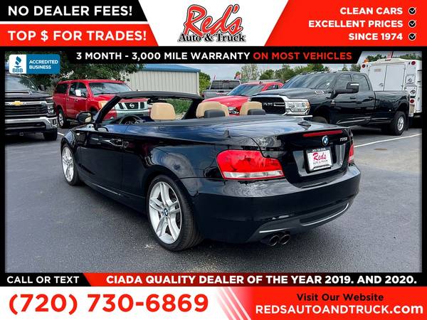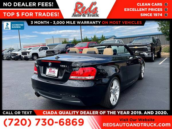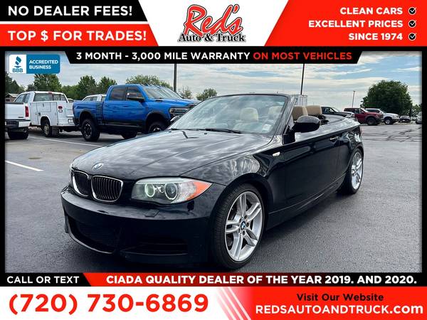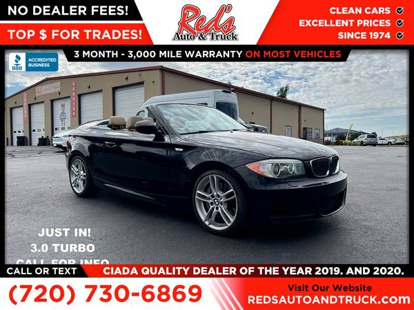 Red's is pleased to present this 2013 BMW 1 Series! This sleek BMW just arrived at our lot and is ready for its new owner. With only 81,387 miles on the odometer, it offers a perfect blend of sportiness and luxury. This BMW is loaded with options including a premium leather interior, navigation package, heated front seats, Bluetooth connectivity, and More! Recently serviced in our shop with a fresh oil change and a full inspection, this vehicle is ready to hit the streets today! Remember, we also never charge a dealer handling or doc fee, include a limited warranty on most vehicles, and offer great protection plans at an affordable price to help protect your purchase for years to come. Please call Reds Auto and Truck at 303-726-5520. We are a proud member of CUDL and have access to many Credit unions at great rates. We are A+ Rated with the BBB, Winner of the 2019 & 2020 CIADA Quality Dealer Of The Year Award, have excellent online reviews, and have been in business since 1974 come see why. We offer clear low upfront prices and also have no dealer handling or documentation fees! Our vehicles undergo a multi-point inspection and reconditioning process and most vehicles come with a 3-month 3,000-mile limited warranty. You can always see more photos and other cars at www.redsautoandtruck.com (http://www.redsautoandtruck.com/) or stop by 1451 Vista View Drive Longmont CO 80504.