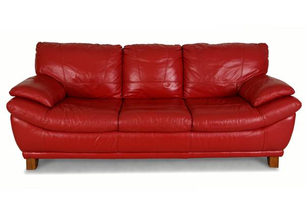 Red Full-Grain Leather 3-Seat Sofa – Contemporary Transitional Style, Wood Legs