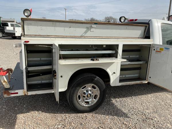 2013 CHEVROLET SILVERADO 2500HD REGULAR CAB LONGBED, 6.0L GAS V8 AND RWD, CLOTH SEATS, VINYL FLOORS, MANUAL WINDOWS AND LOCKS, CRUISE, STROBES, HAS A KNAPHEIDE UTILITY BED WITH LADDER RACK, LIGHTS AND TOP BOX, HAS 170K MILES