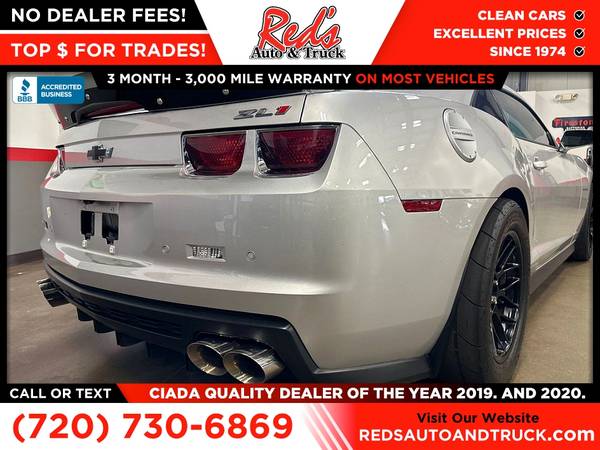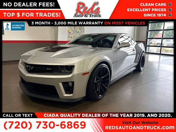 #supercharged #zl1 Red's Auto And Truck is pleased to present this 2013 Chevy Camaro Zl1 with only 18,000 miles, new tires, and a fresh e-test ready to go! This Zl1 includes factory wheels with new tires as well as rear drag wheels with drag radials. This is a local 2-owner car with clean CARFAX history report showing no damage or accidents. Remember, we also never charge a dealer handling or doc fee, include a limited warranty on most vehicles, and offer great protection plans at an affordable price to help protect your purchase for years to come.