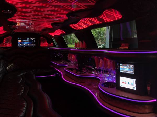 features: dual alternators, single window conversion, marine vinyl top, upgraded suspension, heavy duty rear air conditioning and heating, suede interior headliner, courtesy interior led lighting, color changing led mood lighting, custom bar with mesh led lighting, cup holders, champagne well, champagne glass holders, two ice bins,