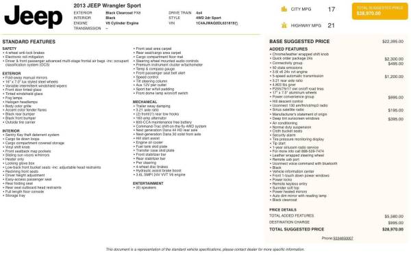 Freeman Motor Company is a 3 time winner of Oregon's QUALITY Dealer of the YEAR. You can connect with us by calling 503-485-0007.\n\nCall now or visit our website to confirm availability! This 2013 Jeep Wrangler has a Black exterior and Black Interior interior. 90,102 miles. Stock #SFJP1819.\n\nFEATURES AND OPTIONS YOU SHOULD KNOW ABOUT:\n