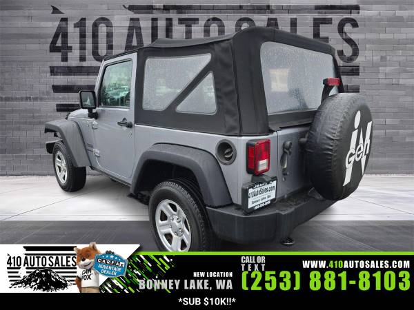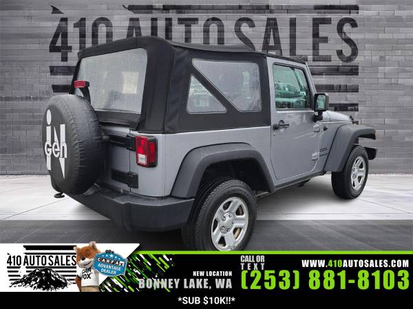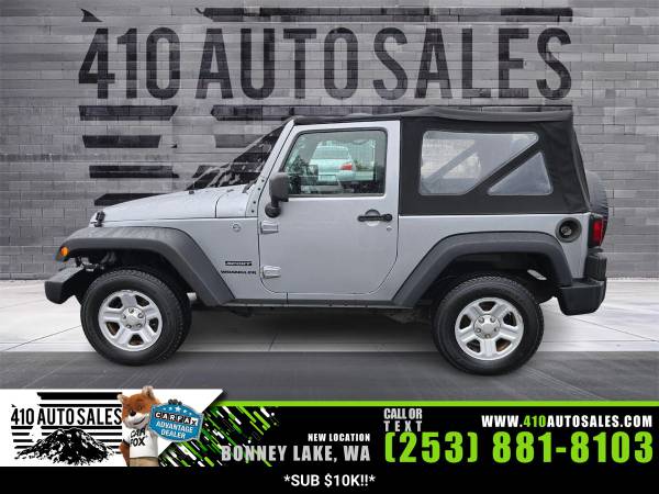 Jeep Wrangler Sport 2748,1c4ajwag0dl649379,410 auto sales,3.6l v6 285hp 260ft. lbs.,2013 jeep wrangler sport,used vehicles,used suv,410 auto sales,bonney lake,wa,jeep,wrangler,sport,suv,gas,silver exterior,black interior,cloth,cloth interior,automatic,automatic jeep,automatic jeep wrangler,6 speed speed,4x4,2 doors,2 drs,two doors,4 seats,four seats