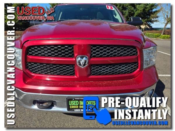 Check out the amazing deal on this 2013 Ram 1500 Crew Cab on sale at Used LLC while it lasts and find out why we are Vancouver's #1 Used Car Dealership! This 4 door Pickup is equipped with a solid 390 horse power V8, HEMI, 5.7 Liter engine and desirable Automatic, 6-Spd transmission that deliver performance as well as an impressive 19 MPG on the highway and 13 MPG in the city you won't find in most 4WD Pickups of this class. At this price and condition it's a deal you just can't go wrong with! We have the best selection of Rams, 1500 Crew Cabs, and Pickups in town so come stretch your dollar further and really truly get the most for your money when you take advantage of this incredible offer. We offer a huge selection of high value, low cost vehicles with a zero hassle sales process and on the spot finance approvals for all credit types 7 days a week but deals like this on in-demand vehicles such as the 2013 Ram 1500 Crew Cab you're looking at never last so don't wait - act now and hurry in for a test drive today before someone else grabs it!!! ||||| 2013 Ram 1500 Crew Cab Outdoorsman Pickup 4D 5 1/2 ft 4WD Pickup ||||| Used Car Dealership in Vancouver WA - Financing, Trades, Free CARFAX history report on every vehicle. Come see this and Vancouver's best selection of used vehicles today! Visit in person at 9408 NE Hwy 99, Vancouver, WA 98665, online at https://www.usedllcvancouver.com/ or call / text us at 360.218.0188 7 days a week. Used Car Dealerships Vancouver, WA. Easy Financing. Bad Credit OK. Credit Union Rates Direct Lending.Used cars for sale Vancouver, WA. *Notice: Subject to prior sale. The price listed for our vehicles does not include charges such as: License, Title, Registration Fees, State or Local Taxes, Finance Charges, Optional Credit or Liability Insurance, Delivery Fee, and Negotiable Documentary Service Fee of up to $200.00 that will be added to the Sale Price / Capitalized Cost. These will be added to the sale price of the vehicle when applicable unless otherwise negotiated prior to sale. The Dealership makes no representations, expressed or implied, to any actual or prospective purchaser or owner of this vehicle as to the existence, ownership, accuracy, description or condition of the vehicle's listed equipment, accessories, price or any warranties including implied warranty of merchantability or fitness for a particular purpose. Vehicle Pricing - Where permitted by law, all dealer fees and amounts must be disclosed in a clear, conspicuous and legible fashion. There are no exclusions. The Dealership is not responsible for typographical errors in price or equipment listed. Any and all differences must be addressed prior to the sale of this vehicle. All offers including price and finance options subject to expire without notice, valid day one only, and valid on approved credit, see dealer for full details. Used LLC | 9408 NE Hwy 99 Vancouver, WA 98665 | Dealer License #2417