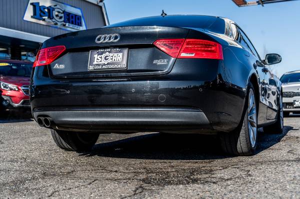 The 2014 Audi A5 2dr Cpe Auto quattro 2.0T Premium Plus is a striking blend of elegance and performance. Cloaked in a sleek black exterior, this vehicle exudes sophistication at every angle. Its coupe silhouette is accentuated by sharp lines and a sporty stance. The refined contours are complemented by Audi’s iconic LED headlights and stylized grille, embodying a timeless design that turns heads effortlessly.Stepping inside, you’re greeted by a luxurious black interior that resonates with meticulous craftsmanship. The cabin is appointed with high-quality materials, offering both comfort and style to every occupant. Leather seats provide excellent support while maintaining a plush feel during every drive. Audi’s intuitive controls and driver-centric layout ensure ease of use, enhancing the overall driving experience.Under the hood, the A5 features a robust 2.0L 4-cylinder engine, delivering a potent blend of power and efficiency. This model’s all-wheel-drive system, known as quattro, offers superior traction and stability across varying road conditions. The engine’s responsive performance is paired with an automatic transmission that shifts seamlessly. Altogether, the 2014 Audi A5 2dr Cpe Auto quattro 2.0T Premium Plus is engineered for those who desire luxury, performance, and practicality in one cohesive package.