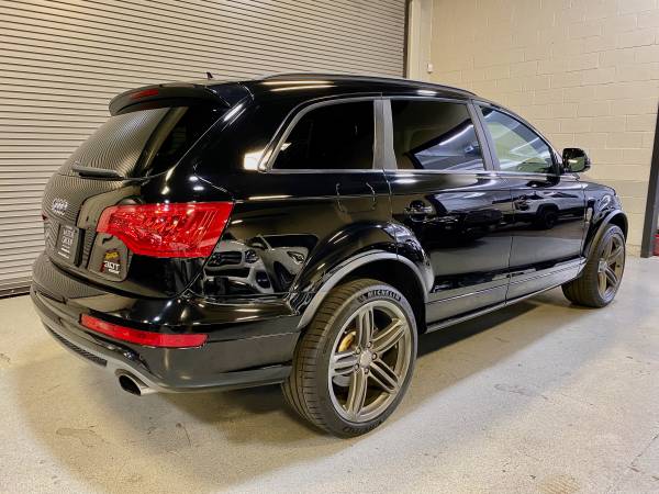 Stunning 2014 AUDI Q7 3.0T QUATTRO S LINE PRESTIGE in Night Black with Black S Line Interior. Truly an exciting 7 Passenger SUV with 3.0 Liter 6 Cylinder TFSI 333hp / 325 ft lb of Torque with 8 Speed Automatic Transmission and quattro permanent All Wheel Drive. Clean Carfax, Two Owner California car, just serviced. Very well kept Q7 with all the Gear. Third Seat, S-Line Interior Package with Shift Paddles, Black Headliner and Brushed Aluminum inlays, S-Line PLUS Package with 21 inch spoke design wheels with Titanium Finish and more. See original window sticker in photo gallery for complete equipment listing.