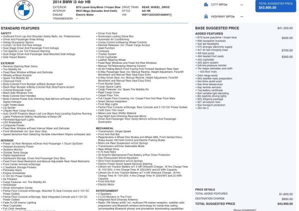 Freeman Motor Company is a 3 time winner of Oregon's QUALITY Dealer of the YEAR. You can connect with us by calling 503-485-0007.\n\nCall now or visit our website to confirm availability! This 2014 BMW i3 has a Laurel Gray Metallic w/BMW i Frozen Blue Accent exterior and Giga Cassia/Carum Spice Gray interior. 30,279 miles. Stock #SZB6097.\n\nFEATURES AND OPTIONS YOU SHOULD KNOW ABOUT:\n