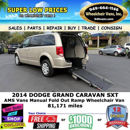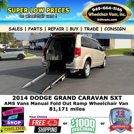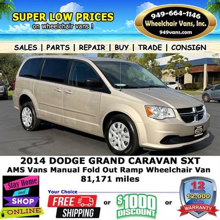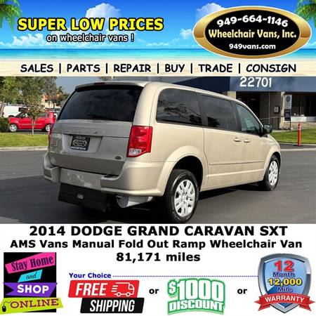 2014 Dodge Grand Caravan AMS Vans Manual Fold Out Ramp Rear loading Wheelchair Van