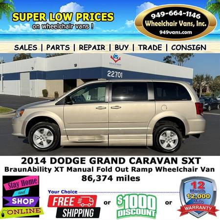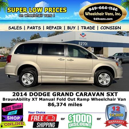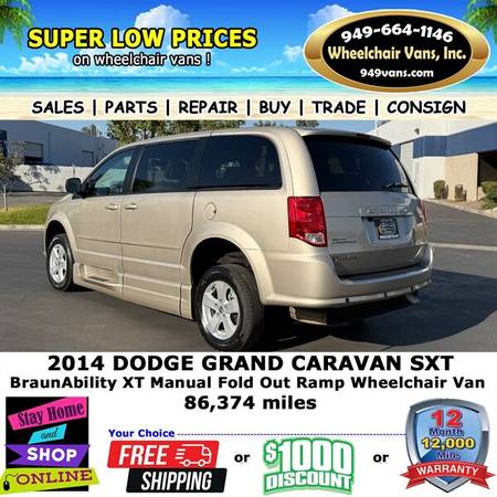 2014 Dodge Grand Caravan BraunAbility XT Manual Fold Out Ramp Side Loading Wheelchair Van