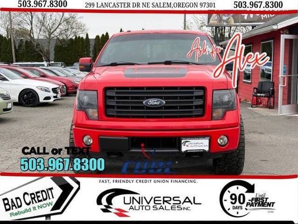 Welcome to Universal auto sales Next to Dicks Sporting Goods. Ask for Alex 5 ⃣0 ⃣3 ⃣-9 ⃣6 ⃣7 ⃣-8 ⃣3 ⃣0 ⃣0 ⃣ FINANCING AVAILABLE FOR ALL CREDIT SITUATIONS -WE PAY TOP DOLLAR TRADE INS! -WE ARE A CUDL DEALERSHIP AND HAVE FINANCING OPTIONS FOR ALL CREDIT TYPES! (CREDIT UNION DIRECT LENDING) -LOW FINANCING RATES! (OAC) -SERVICE CONTRACTS AVAILABLE! -CARFAX REPORTS AVAILABLE FOR EVERY VEHICLE! Hablamos Español: ITIN Aceptado Ask For Alex UNIVERSAL AUTO SALES INC 299 Lancaster Dr Ne Salem Oregon 97301 503.967.8300 DA2913 Introducing the 2014 Ford F-150 FX4 - the ultimate truck for all your hauling and towing needs. This rugged and reliable pickup truck is built to handle any job with ease. With its powerful V8 engine, the F-150 FX4 delivers impressive performance and can tow up to 11,300 pounds.