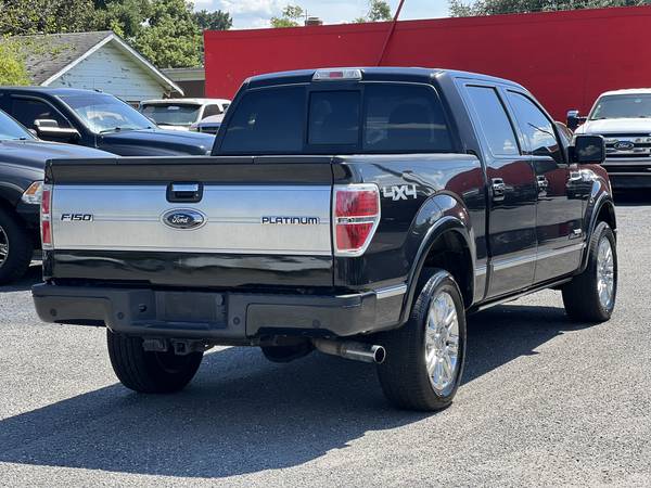 - The 2014 Ford F-150 SuperCrew Platinum 3.5L EcoBoost V6 4x4 is a top-of-the-line luxury pickup that blends power, refinement, and style. This clean, accident-free truck presents beautifully with a sleek black exterior paired with a premium black leather interior, complemented by chrome accents and bold 20-inch chrome wheels. Under the hood, the 3.5L EcoBoost V6 delivers 365 horsepower and 420 lb-ft of torque, offering strong acceleration and excellent towing capability. With a towing capacity of up to 11,300 lbs and a payload rating of over 3,000 lbs, it provides both work-ready strength and everyday comfort, making it a standout among premium trucks.