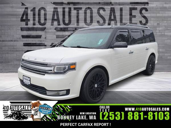 Ford Flex Limited 2376,2376a,2fmhk6dt4ebd43741,410 auto sales,ecoboost 3.5l twin turbo v6 365hp 350ft. lbs.,2014 ford flex limited,used vehicles,used wagon,410 auto sales,bonney lake,wa,ford,flex,limited,wagon,gas,white exterior,black interior,automatic,automatic ford,automatic ford flex,6 speed speed,awd,4 doors,4 drs,four doors