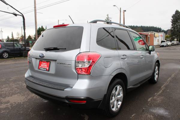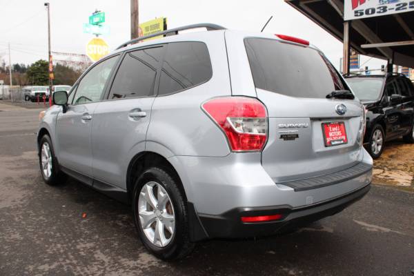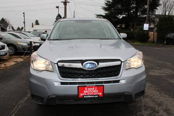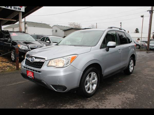 2014 Subaru Forester 4dr Auto 2.5i Premium PZEVCLEAN TITLEExperience the ultimate blend of style, performance, and reliability with this sleek Silver 2014 Subaru Forester! This trusty car comes equipped with a 2.5L 4 Cyl DOHC 16V engine that provides a smooth and efficient ride, paired with a Lineartronic CVT transmission for seamless gear shifts. With a spacious interior and comfortable front bucket seats, it's perfect for long road trips or daily commutes. The Express Open/Close Sliding Glass sunroof allows you to enjoy the sunshine while cruising down the road. Plus, with safety features like side impact beams, airbags throughout the cabin, and a convenient back-up camera, you can drive with peace of mind knowing you're well protected. And best of all, a Carfax report is available, so you can purchase with confidence. Don't miss out on the opportunity to own this impressive Subaru Forester - the perfect combination of practicality and fun!Driving the Subaru ForesterBoasting a stronger, more rigid central structure, wider track dimensions, longer wheelbase and a retuned suspension to complement Subarus signature Symmetrical All-Wheel Drive, the 2014 Forester deports itself most impressively and predictably on or off road. New, more efficient electrically-boosted power steering provides more positive feedback while the revamped chassis does an admirable job of keeping body roll in check under hard cornering. Tauter underpinnings on 2.0XT models add extra sportiness with minimal impact on ride compliance while the tri-mode SI-Drive feature on the turbo-spec CVT allows one to better exploit the 80-horsepower advantage this engine has over the one in its naturally aspirated 2.5i sibling an edge that helps trim the 2.0XTs 0-60 mph times from 9.3 to 6.3 seconds. The X-Mode feature on upline Forester variants provides its own kind of multi-terrain confidence boost on slick paved roads or in the dirt at speeds up to 25 mph.FINANCING for ALL types of credit! As a CUDL (Credit Union Direct Lender) We are able to get the best % rates available OAC. We have aggressive first time buyers programs. Apply on line. https://www.eandjmotors.com/creditappGet an answer within minutes. We Buy Cars,? Trucks,? and SUVs.Se habla espanol llame ya! Financiamento para todos! Si se puede! O.A.C.Check out our Awesome Reviews!!! TEXT / CALL 503.741.8762Visit E and J Motors online at eandjmotors.com to see more pictures of this vehicle or call us at 503-257-0159 today to schedule your test drive Visit E and J Motors online at eandjmotors.com to see more pictures of this vehicle or call us at 503-257-0159 today to schedule your test drive.1st time buyer program available 0.00 down 6 month job O.A.C .