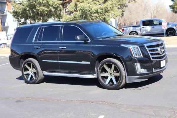 The 2015 Cadillac Escalade Utility 4D Premium 4WD 6.2L V8 is a bold and luxurious full-size SUV that delivers commanding performance and refined comfort in equal measure. Powered by a robust 6.2L V8 engine, it produces strong acceleration and confident towing capability while maintaining a smooth, composed ride. The sophisticated 4WD system enhances traction and stability, making it well-suited for varying road conditions. Its striking exterior design features a distinctive grille, sharp LED lighting, and an unmistakable presence that turns heads wherever it goes. Inside, the Premium trim surrounds passengers with high-quality materials, plush leather seating, advanced technology, and generous space across all three rows. Cutting-edge safety features and intuitive infotainment add convenience and peace of mind to every drive. With its blend of power, elegance, and versatility, the 2015 Escalade Premium stands out as an exceptional SUV for families and individuals who expect both performance and first-class comfort.