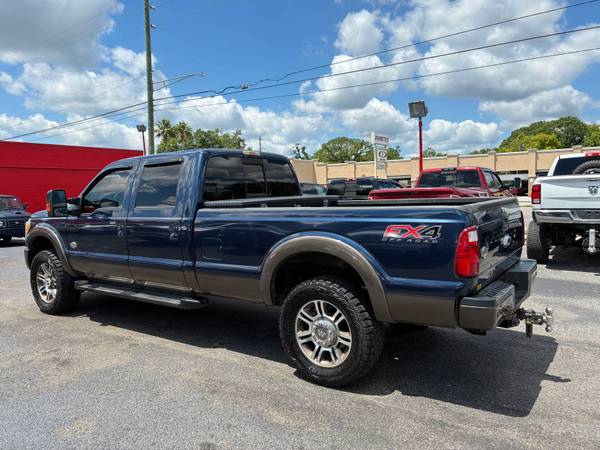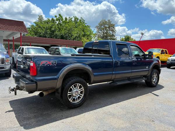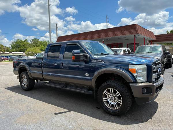 - The 2015 Ford F-350 Super Duty King Ranch 6.7L Powerstroke Turbodiesel 4x4 is a stunning example of rugged luxury and serious performance. Finished in an eye-catching dark metallic blue and gold two-tone exterior, this truck commands attention wherever it goes. Its bold stance and refined details hint at the power beneath the hood-a formidable 6.7L Powerstroke V8 turbodiesel engine that delivers immense towing and hauling capability. Inside, the cabin is nothing short of premium, featuring the signature King Ranch leather interior that combines Western-inspired styling with modern sophistication. Every available option is equipped, from advanced technology and infotainment systems to heated and cooled seats, navigation, and a premium sound system. This F-350 is not just a truck-it's a statement of capability, comfort, and class.