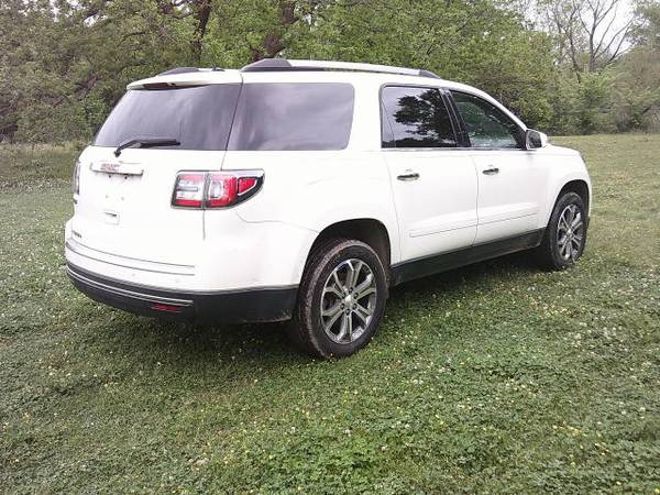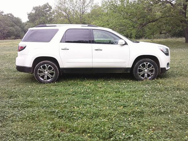 2015 GMC Acadia SLT 7 Passenger 85K mi 3.6L Automatic, Ebony Leather with Heated Power Bucket Seats, Second Row Bucket Seats and Third Row Seating. PW, PL, PS, PB, Tilt Telescopic Steering Column, Cruise, Power Heated Mirrors, Automatic Headlamps, Fog Lights, Power Liftgate, Rear Obstacle Detection, AM/FM/XM Touchscreen Stereo ,CD, Aux Jack, USB Port, Premium Audio Amplifier, Rear Camera View. Rear Seat Audio Control with Ear Phone Jacks. Just Serviced ,New Front Struts and Brakes, Good Michelin Tires on Factory Alloy Wheels, Good Dependable Transportation. Call or Text Tom for more info.