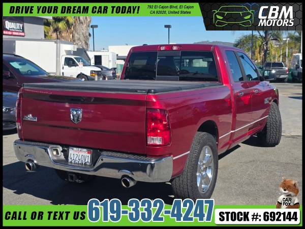 Our brawny 2015 RAM 1500 Big Horn Quad Cab 4X2 is handsome Deep Cherry Red makes a powerful first impression! Fueled by a 3.6 Liter Pentastar V6 that offers 305hp tethered to an 8 Speed TorqueFlite Automatic transmission. This Rear Wheel Drive rewards you with nearly 25mpg on the highway, a smooth ride with superior acceleration, and tremendous towing capability. The muscular physique is highlighted by an aggressive grille, great-looking aluminum wheels, and distinctive inserts that enhance the aerodynamics of this machine. Designed so you can work smarter, not harder, you'll also find a Class IV receiver hitch with 4- and 7-Pin connectors, a tonneau cover, and a locking tailgate. Big Horn helps you travel in comfort and style with a leather steering wheel with audio controls, a Uconnectยฎ display with voice command and Bluetoothยฎ, cloth seats, power accessories, and a great six-speaker sound system auxiliary and USB inputs. Anyone who sees it will admire the upscale interior that seems to be tailor-made just for you! As always, safety is priority number one with RAM, and with stability control, hill start assist, trailer sway control, front-seat side airbags, and full-length side curtain airbags, you can rest easy knowing you'll be safeguarded. Now is the time to make this 1500 Big Horn your partner for work and play. Save this Page and Call for Availability. We Know You Will Enjoy Your CBM Motors Test Drive Towards Ownership! br>