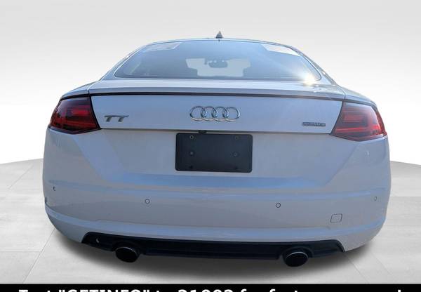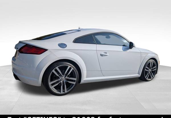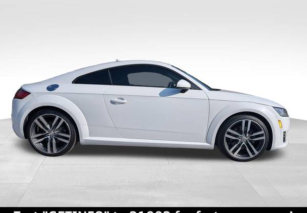 Used 2016 Audi TT For sale In Jacksonville Florida.Ibis White quattro quattro 6-Speed Automatic S tronic 2.0L 4-Cylinder TFSI Passed Rigorous Safety Inspection Performed by Certified Technician, Meticulously Detailed Inside and Out, ** Technology Package! **, CLEAN CARFAX, Audi Connect w/Online Services, Audi MMI Navigation Plus, Audi Side Assist, Auto-Dimming/Power-Folding Heated Exterior Mirrors, Fine Nappa Leather Seat Trim w/Diamond Stitching, Parking System Plus (Front/Rear Acoustic Sensors), Rear-View Camera, S Sport Seat Package, S Sport Seats, Technology Package, Wheels: 9.0"" x 19"" Forged 5-Arm Star Design, 21"" Alloy wheels, 4-Wheel Disc Brakes, 9 Speakers, ABS brakes, Air Conditioning, AM/FM radio: SiriusXM, Auto-dimming Rear-View mirror, Automatic temperature control, Brake assist, Bumpers: body-color, Compass, Delay-off headlights, Driver door bin, Driver vanity mirror, Dual front impact airbags, Dual front side impact airbags, Electronic Stability Control, Four wheel independent suspension, Front anti-roll bar, Front Bucket Seats, Front Center Armrest, Front fog lights, Front reading lights, Fully automatic headlights, Garage door transmitter: HomeLink, Heated door mirrors, Heated front seats, Heated Front Sport Seats, Illuminated entry, Knee airbag, Leather Shift Knob, Leather/Alcantara Seating Surfaces, Low tire pressure warning, Occupant sensing airbag, Outside temperature display, Overhead airbag, Panic alarm, Passenger door bin, Passenger vanity mirror, Power door mirrors, Power driver seat, Power passenger seat, Power steering, Power windows, Radio data system, Radio: MMI AM/FM/SAT w/1 CD Player, Rain sensing wipers, Rear anti-roll bar, Rear fog lights, Rear Parking Sensors, Rear window defroster, Remote CD player, Remote keyless entry, Security system, Speed control, Speed-sensing steering, Speed-Sensitive Wipers, Split folding rear seat, Spoiler, Sport steering wheel, Steering wheel mounted audio controls, Tachometer, Telescoping steering wheel, Tilt steering wheel, Traction control, Trip computer, Turn signal indicator mirrors, Variably intermittent wipers, Wheels: 8.5"" x 18"" 5-Twin Spoke Dynamic Design, Audi Connect w/Online Services, Audi MMI Navigation Plus, Audi Side Assist, Auto-Dimming/Power-Folding Heated Exterior Mirrors, Fine Nappa Leather Seat Trim w/Diamond Stitching, Parking System Plus (Front/Rear Acoustic Sensors), Rear-View Camera, S Sport Seat Package, S Sport Seats, Technology Package, Wheels: 9.0"" x 19"" Forged 5-Arm Star Design.Recent Arrival! 23/30 City/Highway MPGAwards: * JD Power Initial Quality Study (IQS)For your peace of mind we have included over 40+ photos and a video for you to judge the condition yourself. As you do your comparison shopping, you will see AUDI ORANGE PARK offers some of the best values in the market. We will provide you a Carfax, Comprehensive Vehicle Inspection. Call (904) 822-7600 or visit AUDI ORANGE PARK . Located at 7230 Blanding Blvd, Jacksonville, Florida 32244. Out of town buyers free pick up at the airport. See more cars online at https://www.audiorangepark.com/used-inventory/index.htm.Reviews: * Isn't it about time you treated yourself to something fun, stylish and modern? The redesigned 2016 Audi TT is all that and more. From its surprisingly powerful four-cylinder engine to the sophisticated cabin and cutting-edge technology, the TT coupe and soft-top convertible make you feel like going for a drive just for fun. See for yourself why we awarded it a coveted Edmunds ""A"" rating. Source: Edmunds * Sporty handling instills confidence in any situation; standard all-wheel drive gives it all-weather capability; performance doesn't sacrifice fuel economy; innovative technology keeps you informed and safe Source: Edmunds