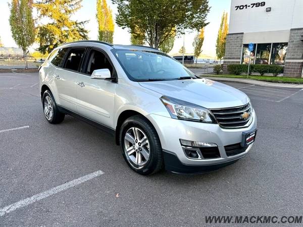 CUDL Financing Available (Credit Union Direct Lending) 2016 Chevrolet Traverse LT, 2 Previous Owners, Local Trade, 28 Service History Records Per CarFax, 3rd Row Seating, Captain Chars, Back-Up Camera, Leather, AWD, 18CMPG, Clean Title & CarFax, V6, 3.6 Liter, Automatic, 6-Spd, FWD, Traction Control, StabiliTrak, ABS (4-Wheel), Keyless Entry, Air Conditioning, Power Windows, Power Door Locks, Cruise Control, Power Steering, Tilt & Telescoping Wheel, AM/FM Stereo, XM Satellite, Bluetooth Wireless, Dual Air Bags, Side Air Bags, F&R Head Curtain Air Bags, Daytime Running Lights.