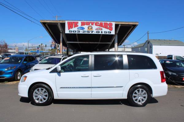 2016 Chrysler Town & Country4dr Wgn Touring CLEAN TITLEHop into this sleek and stylish 2016 White Chrysler Town & Country and get ready for some serious family fun on the road! This beauty is powered by a robust 3.6L V6 engine, perfect for all your adventures. The Touring Suspension will ensure a smooth ride, while the front-wheel drive guarantees excellent handling. Equipped with convenient features like the power sliding rear doors and roof rack, this van is ready for all your travel needs.Inside, the entertainment system with rear DVD player and wireless headphones will keep your passengers entertained for hours on end. With Uconnect Bluetooth connectivity and a 6.5 touch screen display, you'll stay connected and in control while on the go. The spacious interior offers comfortable seating with leatherette third-row seats and a leather steering wheel for a touch of luxury.Safety is a top priority with features like side impact beams, airbags throughout, and rear child safety locks. Plus, rest assured with the available Carfax report for added peace of mind. With an abundance of storage options and a plethora of power outlets, this Chrysler Town & Country is the perfect choice for your next family road trip.Driving the Chrysler Town & CountryDespite its aging platform, Chryslers 2016 Town & Country minivan can still hold its own against newer minivans. We are big fans of the Town &Countrys suspension tuning, which provides minimal body roll yet returns a remarkably smooth ride. The steering feel is also taut and precise. Of course, the heart and soul of this family caravan is the award-winning 3.6-liter Pentastar V6 engine. With power to spare, this engine makes even a fully loaded Town & Country feel sprightly, though fuel economy figures of 17/25 mpg are at the lower end of the minivan mileage game. On the highway, the Town & Country banishes almost all wind and road noise, allowing for easy conversation across all three rows. Nitpicks are few but include an audio touch screen too far from the drivers reach and a rather large turning radius that makes the Town & Country less nimble than its rivals.FINANCING for ALL types of credit! As a CUDL (Credit Union Direct Lender) We are able to get the best % rates available OAC. We have aggressive first time buyers programs. Apply on line. https://www.eandjmotors.com/creditappGet an answer within minutes. We Buy Cars,? Trucks,? and SUVs.Se habla espanol llame ya! Financiamento para todos! Si se puede! O.A.C.Check out our Awesome Reviews!!! CALL 503-257-0159Visit E and J Motors online at eandjmotors.com to see more pictures of this vehicle or call us at 503-257-0159 today to schedule your test drive. Visit E and J Motors online at eandjmotors.com to see more pictures of this vehicle or call us at 503-257-0159 today to schedule your test drive.1st time buyer program available 0.00 down 6 month job O.A.C .
