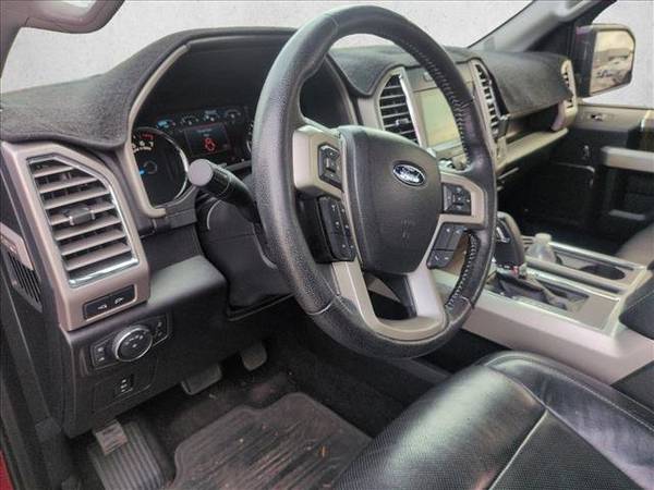 * Lariat Chrome Appearance Package * Engine: 3.5L V6 Ecoboost * Wheels: 20" Chrome-Like Pvd * Trailer Tow Package * Black; Leather-Trimmed Bucket Seats * Leather Seats * Electronic Locking W/3.55 Axle Ratio * Pro Trailer Backup Assist * Ruby Red Metallic Tinted Clearcoat * Tailgate Step W/Tailgate Lift Assist * Integrated Trailer Brake Controller * All-Weather Rubber Floor Mats * Keyless Start * Cooled Front Seat(S) * Chrome Wheels * Transmission: Electronic 6-Speed AutomaticThis outstanding example of a 2016 Ford F-150 Lariat is offered by AutoNation USA Jacksonville. This Ford includes: ENGINE: 3.5L V6 ECOBOOST V6 Cylinder Engine Gasoline Fuel Turbocharged BLACK, LEATHER-TRIMMED BUCKET SEATS Cooled Front Seat(s) Power Passenger Seat Woodgrain Interior Trim Power Driver Seat Heated Front Seat(s) Passenger Adjustable Lumbar Leather Seats Driver Adjustable Lumbar Bucket Seats TRANSMISSION: ELECTRONIC 6-SPEED AUTOMATIC Transmission w/Dual Shift Mode A/T 6-Speed A/T *Note - For third party subscriptions or services, please contact the dealer for more information.* A rigorous inspection for safety and reliability makes this vehicle Certified Pre-Owned. This Ford F-150 Lariat is for the discerning driver who demands the utmost of his vehicle. With less than 108,688mi on this Ford F-150, you'll appreciate the practically showroom newness of this vehicle. Added comfort with contemporary style is the leather interior to heighten the quality and craftsmanship for the Ford F-150 Lariat. More information about the 2016 Ford F-150: The F-150 might be the most important vehicle made by Ford. It continues to be one of their top-selling vehicles, encouraging Ford to put their best foot forward with the 2016 model. The F-150 competes with the Ram, the Chevrolet Silverado and the GMC Sierra 1500, among others, in the full-sized truck category. Ford is clearly pushing its new technology and new ideas with the F-150, offering plenty of options not available anywhere else in this class, such as a 360-degree camera and integrated loading ramps stowed in the pickup bed. A smaller, more fuel efficient EcoBoost engine is also available, which should further improve fuel economy while providing the same kind of horsepower that would normally be delivered by mid-grade V8 engines. At the same time, the F-150 continues to excel at traditional truck tasks, with a best in class towing capacity of 12,200 pounds when properly equipped. This model sets itself apart with available in a huge variety of trims, Towing capacity, efficient turbocharged engines, improved gas mileage, and rugged durability