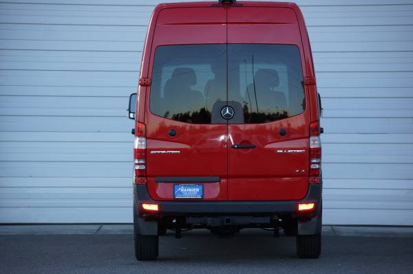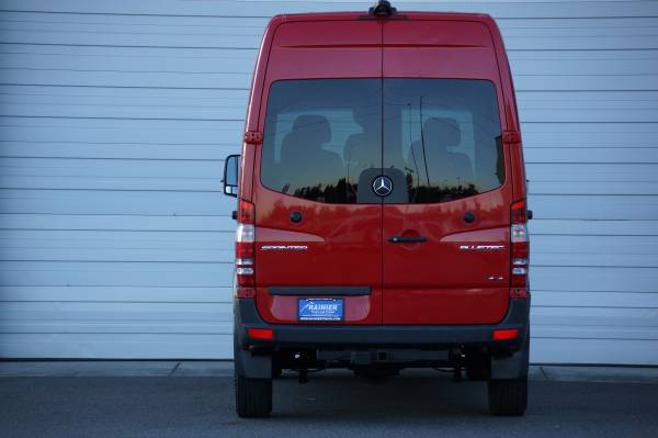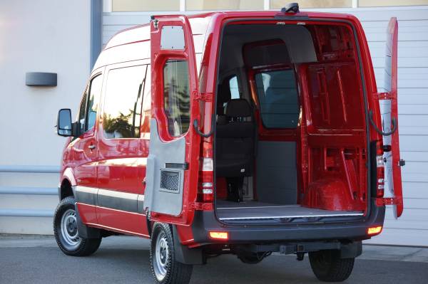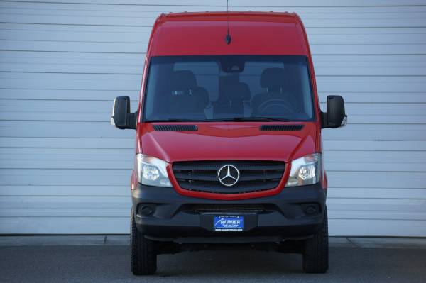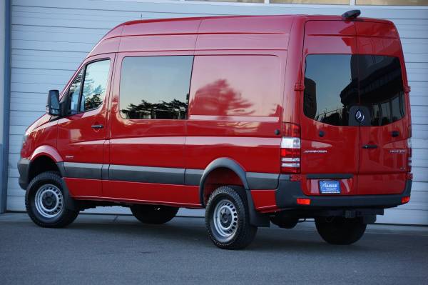 The possibilities are endless with this very unique bright red sprinter van! This is the setup many customers love, a well equipped crew van with the true 4x4 system including low range. This one has some unique options not commonly found on this generation of sprinter like heated seats and of course the Mercedes Jupiter Red factory paint job that won't leave you wondering searching the ikea parking lot trying to remember where you parked. Of course the crew option with the extra bench seat and empty cargo area is great for work, play, family, or any combination of those things. This van comes with the 6 cylinder diesel engine that was used from 2007-2022 and is well understood and well respected. Call or e-mail with any questions or to schedule a viewing appointment, see all of our sprinters at rainiertruck .com