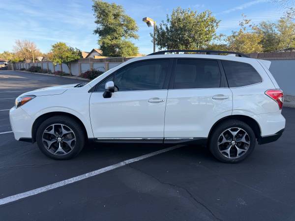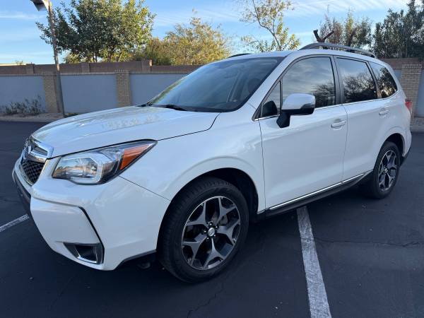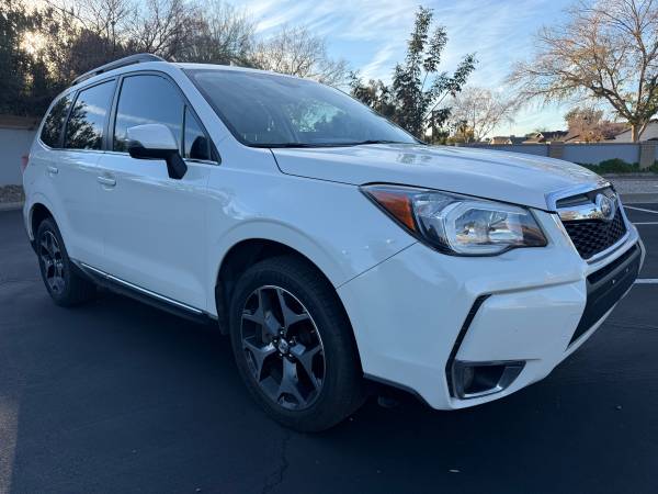 2016 SUBARU FORESTER 2.0XT TOURING 2.0 Liter Automatic with Sport Shifting AWD White Exterior/Black Leather Interior 138xxx Miles One Owner/No Accidents Loaded! Has Dual Power Heated Seats, Heated Side Mirrors, Panoramic Roof, Connected Car with Apps, Crash Sensors, Sport Suspension, Power Liftgate, Bluetooth, USB, Premium Sounds, Push Button Start, Premium Wheels, Great Tires and More! Tons of Regular Service Done. Clean Title.