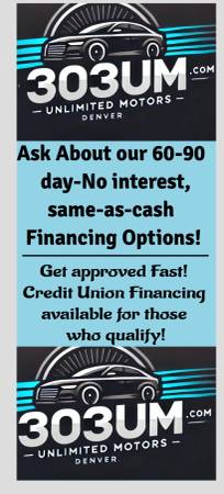 WE FINANCE! WE WORK WITH ALL CREDIT TYPES. CREDIT UNION FINANCING FOR APPROVED BUYERS, 60 TO 90 DAYS SAME AS CASH PROGRAMS AND MORE. JUST AS YOUR SALES REP ABOUT ALL OF OUR FINANCING OPTIONS!
