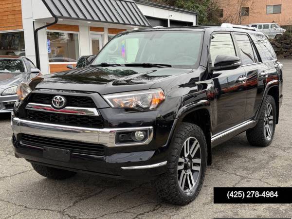 2016 TOYOTA 4RUNNER LIMITED 4X4 **ONE OWNER** **RARE 3RD ROW OPTION** Local ONE owner trade, clean title, automatic transmission, 4x4 with electronic selector, keyless entry, Bluetooth audio, backup camera, heated and cooled seats, power sliding rear window, very clean, well maintained, sunroof, and tons more! All trades welcome!! Creative financing options available! CALL US 24/7 425-200-5995