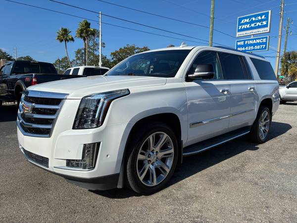 - This 2017 Cadillac Escalade ESV Premium Luxury is an incredibly clean, extended-length luxury SUV that presents exceptionally well inside and out, finished in a stunning Pearl White exterior over a rich Black leather interior that highlights its bold presence and refined design. The ESV's longer wheelbase provides outstanding third-row comfort and expansive cargo space while maintaining a smooth, confident ride, and the powerful V8 delivers effortless acceleration and towing capability. Meticulously cared for and clearly well-preserved, this Escalade offers a premium driving experience with timeless Cadillac styling, advanced technology, and first-class comfort throughout.