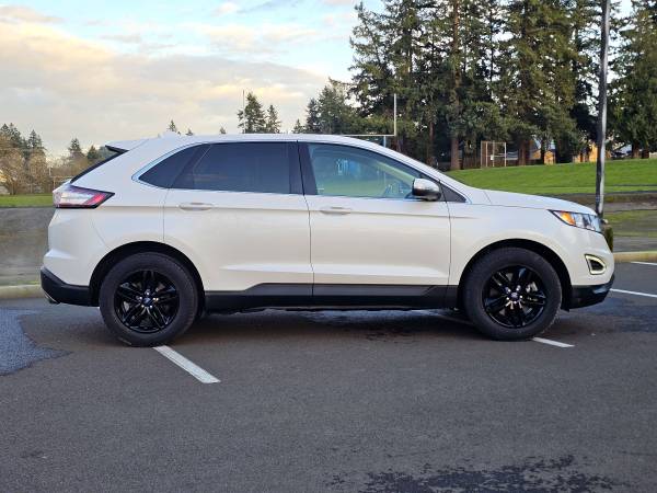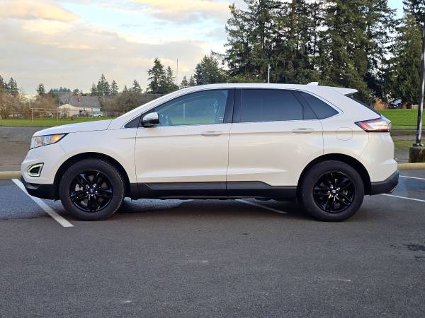2017 FORD EDGE SEL. 2.0L. AWD. 79500 miles. Hill Start Assist. Keyless entry with push-button start. Rear view camera. Front passenger occupancy sensing system. Rain-sensing windshield wipers. LED daytime running lights. Power-folding heated mirrors with LED turn signals and approach lights. LED taillights. 10-way power driver’s seat with lumbar support. 6-way power front passenger seat. Heated front seats. Dual-zone automatic climate control. Leather-wrapped steering wheel. Cruise control. Hands-free power liftgate. Remote engine start. Voice-activated navigation system. Blind Spot. Heated steering wheel. White platinum met tri-coat. Utility package. Technology package. 19-Inch Aluminum Wheels.Very clean interior. The body has been professionally polished and ceramic coated.