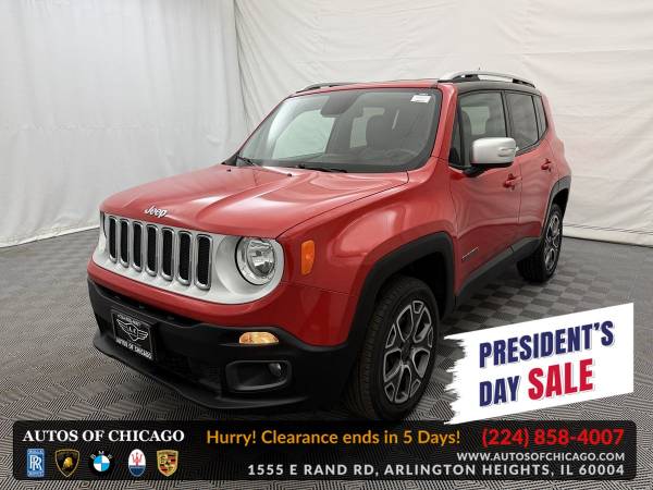 The 2017 Jeep Renegade Limited 4x4 in Colorado Red is a striking blend of rugged capability and sophisticated style. Its bold exterior color makes a powerful statement on and off the road, while the sleek design elements showcase Jeep's commitment to quality and performance. Inside, the Black interior is outfitted with luxurious leather seats and black leather-trimmed bucket seats, offering both comfort and elegance. The keyless entry system ensures convenience, allowing you to access the vehicle with ease and efficiency. Bluetooth connectivity keeps you seamlessly connected on every journey, enhancing your driving experience with optimal functionality. Under the hood, the 2.4L I4 MultiAir engine delivers a robust driving experience, supported by a four-wheel-drive drivetrain that confidently tackles a variety of terrains. The rain-sensing wipers automatically adjust for visibility, exemplifying the Renegade's attention to detail and safety. Additionally, the full-size temporary use spare tire provides peace of mind, ensuring you're prepared for unexpected road conditions. * Exclusive Deals For Limited Time * * HOME OF THE NO HAGGLE PRICE * * We work with all types of credit * Low Rates! (On Approved Credit for 72 months) * Top Dollar Paid For Trades * Nationwide Shipping Assistance * We are one of the best online car buying sites * 90-Day or 5000 miles Limited Warranty for most vehicles * Get an Affordable Car Deal This Car Sale * Priced below KBB Fair Purchase Price! Please call us to learn more about our sales specials * See terms on our cars without impacting your credit score Warranty & Service Contracts Available