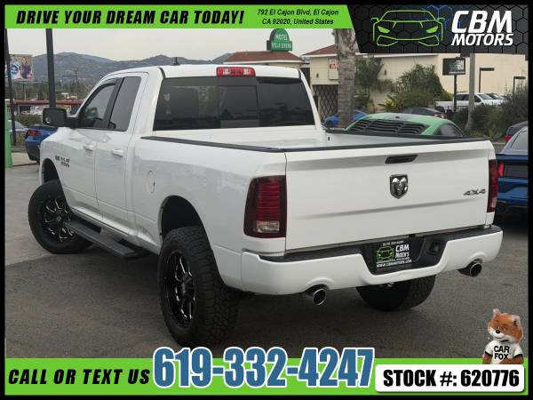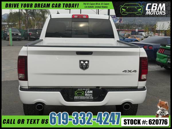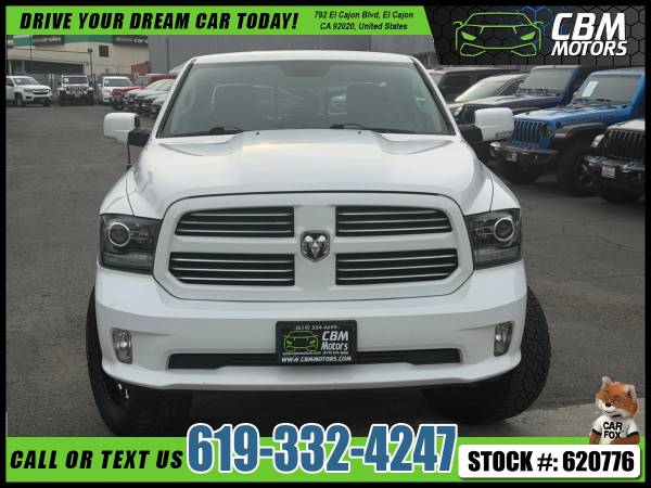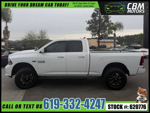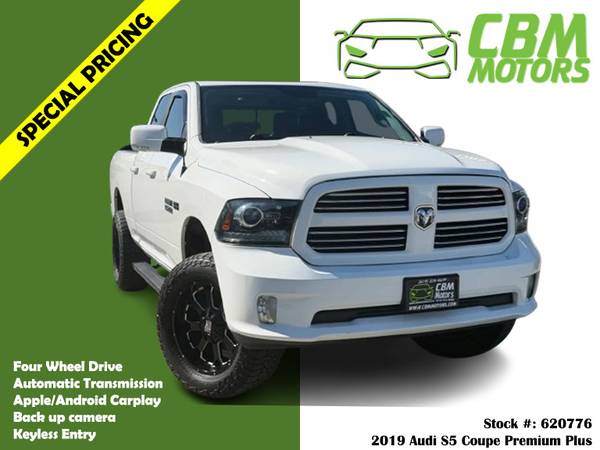 Our 2017 RAM 1500 Sport Quad Cab 4X4 inspires confidence in Bright White Clearcoat and is in it for the long haul! Driven by a 5.7 Liter HEMI V8 that offers 395hp connected to an 8 Speed Automatic transmission to provide ample power and take you down the road with confidence. This Four Wheel Drive scores nearly 21mpg on the highway, is the epitome of performance, and is certainly up to taking on your big jobs. Add some extra swagger to your day with our Sport that commands the road with body colored bumpers/grille, fog lamps, running boards, custom wheels, sport tail lamps, and bi-function projector headlamps. Many amenities are waiting to spoil you in our Sport, such as a power driver seat, keyless entry, and a universal garage door opener. As you command the road, you can also maintain an innovative connection thanks to an 8.4-inch Uconnectยฎ touchscreen infotainment, GPS Navigation, available satellite radio, integrated voice command with Bluetoothยฎ, smartphone integration, and even available WiFi. Our RAM has undergone rigorous testing and offers priceless peace of mind with a backup camera, stability/traction control, trailer-sway control, dynamic crumple zones, side-impact door beams, and an advanced airbag system. Climb inside this 1500 Sport and reward yourself with its legendary performance, capability, and comfort. Save this Page and Call for Availability. We Know You Will Enjoy Your CBM Motors Test Drive Towards Ownership! br>