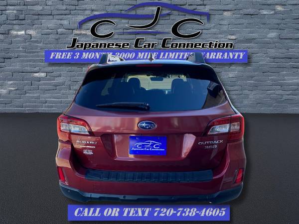 Free Carfax on all cars detailing the work that we performed. 2017 Subaru Outback 3.6R Limited, 1 Owner, with Automatic transmission, Heated seats, Navigation, Backup Camera, Eye-sight, Adaptive Cruise, Lane Departure, and much more. 113k and this one is in great condition. Plus warranty included, 3 month/3000 mile. We service our cars with our expert technicians that know these cars best and with the most outstanding parts available on the market. See a detailed list below. Popular color combination of Venetian Red pearl paint with slate black heated leather interior.