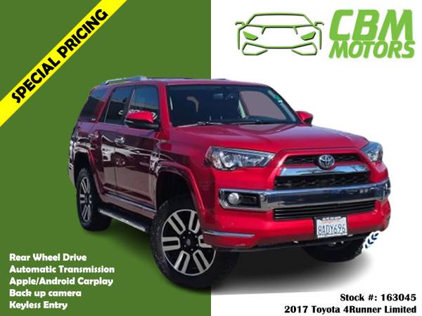 More info: https://www.cbmmotors.com/pre-owned-cars/detail/2017-Toyota-4Runner/1400170