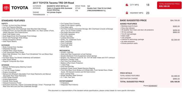 - TRD-Tuned Off-Road Suspension -inc: Bilstein shocks