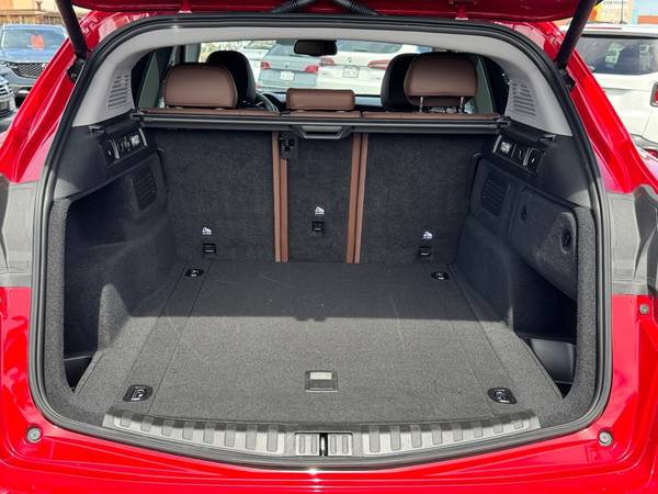 The 2018 Alfa Romeo Stelvio Ti AWD is a striking blend of luxury and performance wrapped in an eye-catching Alfa Rosso exterior. Its distinctive design is highlighted by sleek 20" x 8.5" sport aluminum wheels, complemented by colored brake calipers that add a touch of boldness to its sophisticated silhouette. The Black/Chocolate interior seamlessly blends elegance with comfort, offering a plush environment for both driver and passengers.
