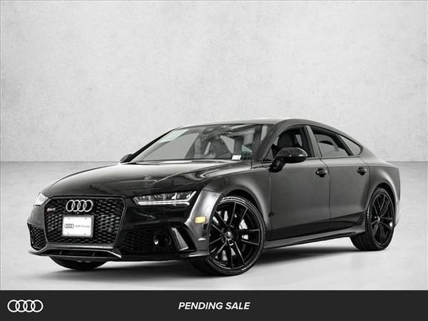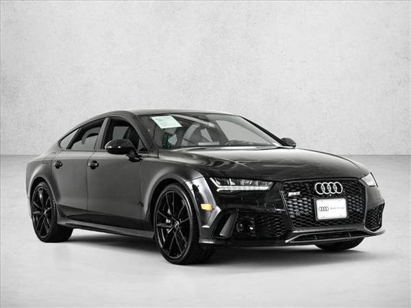 The following items have been reconditioned on this vehicle: new tires! * Exclusive Audi Sport Titanium Exhaust * Mythos Black Metallic * Sun/Moonroof * Leather Seats * Navigation System * Keyless Start * Rear Spoiler * Heads-Up Display * Black; Valcona Leather Seat Trim W/O Honeycomb Stitching * Wheels: 21" 5-Double-Arm-Design High Gloss Black2018 Audi RS7 Performance w/ Akrapovic Titanium Exhaust, Carbon Exterior, 21s, Carbon Ceramic Brakes! 605hp 4.0 Twin Turbo V8 engine, 8 speed automatic transmission, $9000 akrapovic titanium exhaust, carbon optic exterior styling, 21 upgraded wheels, carbon ceramic brakes, keyless entry, push button start, RS design interior, heated hexagon valcona leather seats, heated steering wheel, blind spot monitoring, active spoiler, cruise control and much much more! Being sold as is as shown due to age, history, miles and some scratches/dings. Both keys included and financing available for well qualified buyers!