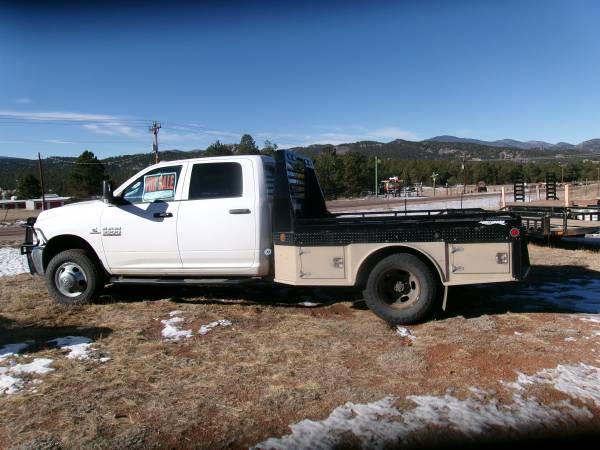 3500 DODGE RAM TRADESMAN, CUMMINS TURBO DIESEL ENGINE, ALISIN 6-SPEED AUTOMATIC, DUAL REAR WHEELS, TRAILER BRAKE CONTROL, RANCH HAND GRILL GUARD, HILLSBORO SERIES 1000 FLATBED WITH TOOLBOXES, B&W GOOSENECK HITCH, POWER DOOR LOCKS, 4WD, TOW HOOKS, CLEAN CLEAR TITLE, LOW MILES FOR AGE, CLEAN CARFAX, REPAIR RECORDS FOR YEARS THAT WE HAVE OWNED IT.