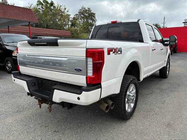 - The 2018 Ford F-350 Super Duty Platinum 6.7L Power Stroke TurboDiesel 4x4 stands as a top-tier blend of strength, sophistication, and capability. This one-owner truck is in absolute mint condition, showcasing the refinement and commanding presence expected from the Platinum trim. Its legendary 6.7L Power Stroke V8 delivers immense power and torque while maintaining smooth, quiet operation, paired with Ford's heavy-duty 6-speed TorqShift automatic transmission and advanced 4x4 drivetrain for unmatched towing and hauling performance. Inside, the cabin surrounds you with premium leather, brushed aluminum accents, and advanced technology, making it equally at home on rugged job sites or long highway cruises. A perfect example of luxury meeting heavy-duty performance.