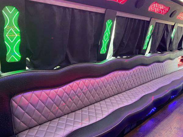 huge ice bins, heavy duty air suspension, roof top ac, surround sound speaker system, 1000 watt amplifier, interior mood lighting, runs excellent, serviced regularly, hard wood floor, black seats with ruffled inserts, custom bars,, diamond plate steel entry, automatic transmission, double rear axle, chrome wheels, cup holders, fiber optic lighting.