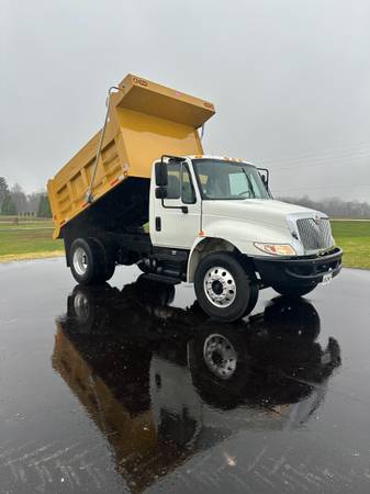 2018 INTERNATIONAL MODEL 4300 VIN 1HTMMMML3JH243728, CUMMINS B6.7 -220HP DIESEL ENGINE, REQUIRES DIESEL EXHAUST FLUID, 7 SPEED AUTOMATIC TRANSMISSION, 10000 LB FRONT AXLE, 17500 LB REAR AXLE, 25999 GVWR, NON CDL, 11R22.5 TIRES, ALUMINUM FRONT WHEELS AND REAR OUTER ALUMINUM WHEELS, AIR RIDE SUSPENSION, AIR RIDE SEAT, AC,NEW 10’ FOSSON DUMP BODY, AUTO TARP, AIR OPERATED TAILGATE, TAILGATE CHUTE, TAILGATE CHAINS FOR SPREADING MATERIAL, ASPHALT LIP FOR PAVER, PINTLE HITCH, REESE HITCH, D-RINGS, ELECTRIC PLUG TO THE REAR.
