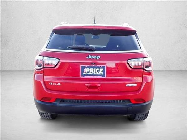 * Transmission: 9-Speed 9Hp48 Automatic * Cold Weather Group * Keyless Start * Rear Spoiler * Black; Premium Cloth/Vinyl Bucket Seats * Engine: 2.4L I4 Zero Evap M-Air W/Ess * Monotone Paint Application * Redline Pearlcoat * Tires: P225/60R17 Bsw As * Wheels: 17" X 7.0" Silver Painted AluminumThis vehicle includes a Money-Back Guarantee* and passed our precise inspection process. Best of all the price you see is the price you pay. No haggling. No back and forth. No pressure. And this price is so good it is guaranteed. *Money-Back Guarantee is valid for 5 days or 250 miles, whichever comes first. Subject to certain terms and conditions. See store for details. Some restrictions apply.Contact AutoNation Subaru Arapahoe today for information on dozens of vehicles like this 2018 Jeep Compass Latitude. This Jeep includes: ENGINE: 2.4L I4 ZERO EVAP M-AIR W/ESS 4 Cylinder Engine Gasoline Fuel *Note - For third party subscriptions or services, please contact the dealer for more information.* Stylish and fuel efficient. It's the perfect vehicle for keeping your fuel costs down and your driving enjoying up. Want to brave the road less traveled? You'll have the 4WD capabilities to do it with this vehicle. One of the best things about this Jeep Compass is that it has low, low mileage. It's ready for you to truly break it in. Get a complete and detailed history at no charge on this wonderfully maintained pre-owned vehicle. Clean interior? How about flawless. This Jeep Compass looks like has never been used. Stupendously fast, yet subtle at the same time, this Jeep Compass Latitude sets the bar high. A true automotive masterpiece, this Jeep can function on track-day or work-day, and will always get you to your destination very quick. Treat yourself to a Jeep Compass Latitude that's got it all. Nearly every option is packed into this beautiful ride. Added comfort with contemporary style is the leather interior to heighten the quality and craftsmanship for the Jeep Compass Latitude. This 2018 Compass Latitude has extra options like the Jeep navigation system. The additional feature will keep you safe and will make this Jeep Compass even more dependable.