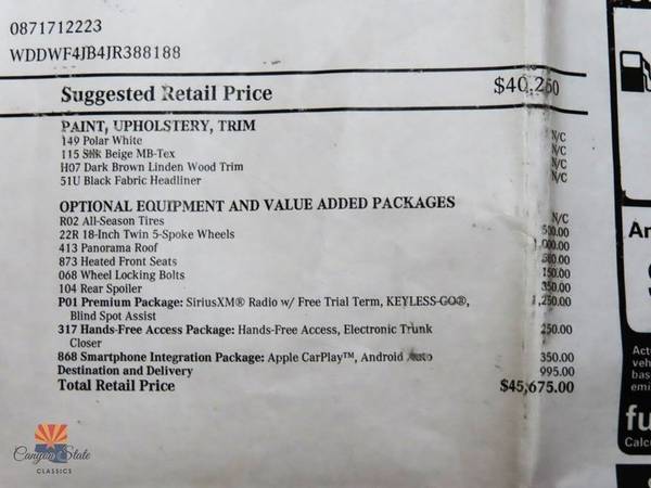 Disclaimer: Canyon State Classicswill never sell or share your mobile number. Standard text messaging rates may apply. Subject to prior sale. The price listed for this vehicle does not include charges such as: License, Title, Registration Fees, Depending were you live State or Local Taxes, Finance Charges, Optional Credit or Liability Insurance, Delivery Fee, and State Documentary Service Fee. The Dealership makes no representations, expressed or implied, to any actual or prospective purchaser or owner of this vehicle as to the existence, ownership, accuracy, description or condition of this vehicle's listed equipment, accessories, price or any warranties. Vehicle Pricing - Where permitted by law, all dealer fees and amounts must be disclosed in a clear, conspicuous and legible fashion. There are no exclusions. The Dealership is not responsible for typographical errors in price or equipment listed. Any and all differences must be addressed prior to the sale of this vehicle