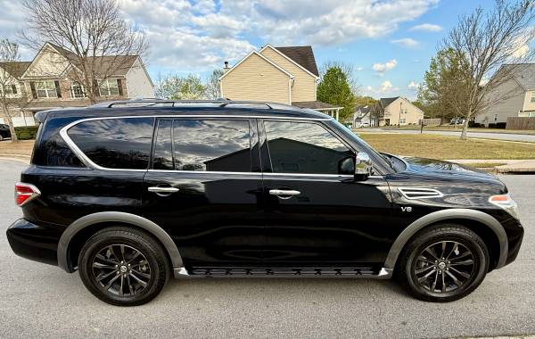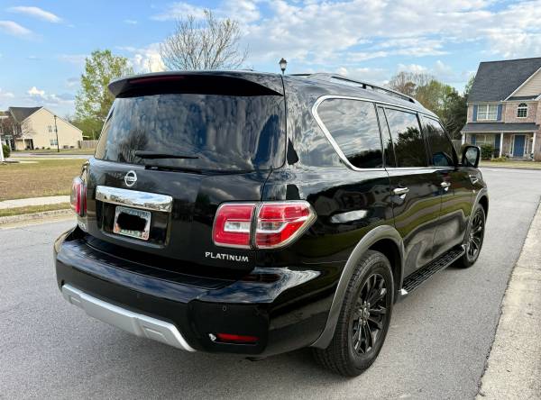 Super clean 2018 Nissan Armada Platinum Edition, DVD. Navigation, 7 passengers, third row seat, Leather, Sunroof, 360 Backup camera, 1 owner, clean Georgia title, Heated and ventilated cooled seats, 2 set a remote keys , remote starter , keyless entry, power lift gate, power seats, front collision warning assist, Lane departure warning assist, Blindspot monitor, Bluetooth, AUX. USB. Heated steering wheel. Adaptive Cruise Contro , The vehicle is fully loaded. It has every option that Car comes with too much to list. Nobody damage no scratches no rips in the seats non-smoker car. New Emissions. very good tires. everything working great ready to go. call me or text me at.77O’’9O5’’348I