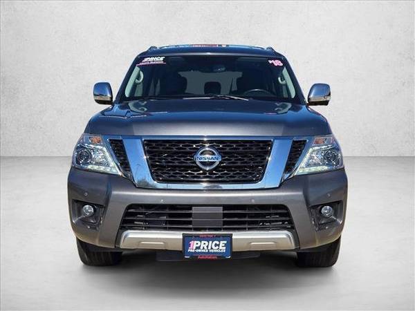 * [S01] Premium Package * Sun/Moonroof * Leather Seats * Navigation System * 3rd Row Seat * [L92] 2Nd & 3Rd Row Carpeted Mats * [M92] Cargo Package * Keyless Start * Rear Spoiler * [C03] 50 State Emissions * Charcoal; Leather-Appointed Seat Trim * Gun MetallicThis vehicle includes a Money-Back Guarantee* and passed our precise inspection process. Best of all the price you see is the price you pay. No haggling. No back and forth. No pressure. And this price is so good it is guaranteed. *Money-Back Guarantee is valid for 5 days or 250 miles, whichever comes first. Subject to certain terms and conditions. See store for details. Some restrictions apply.Thank you for visiting another one of AutoNation USA Houston's online listings! Please continue for more information on this 2018 Nissan Armada Platinum with 103,884mi. This Nissan Armada Platinum is an incredibly versatile vehicle that is a must have for any family. Sophistication & understated luxury comes standard on this Nissan Armada Platinum. Well-known by many, the Armada has become a household name in the realm of quality and prestige. There is no reason why you shouldn't buy this Nissan Armada Platinum. It is incomparable for the price and quality. You can finally stop searching... You've found the one you've been looking for.